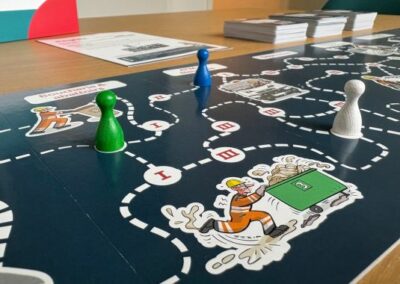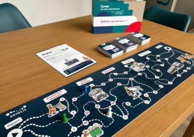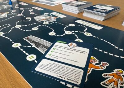 Avant chaque session, l’animateur compose son plateau en fonction des risques à traiter et du public présent. Résultat : le jeu s’adapte à chaque situation.